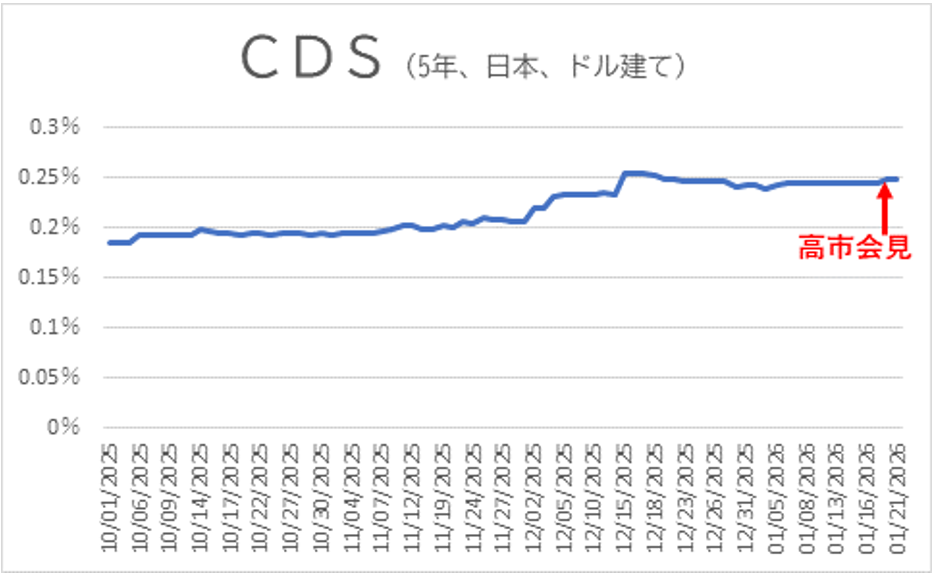 本当に「高市積極財政で日本は危なくなった」と市場が考えているのであれば、真っ先に反応するのはCDSです。しかし、現実にはCDSはほぼ不変です。