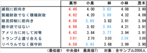 一方、岸田・石破路線を引き継ぐと自分自身でも宣言し、かつ、石破氏からも総裁選で強く支持されている小泉・林氏は、緊縮・リベラル路線の政治家であると実際に国民からも強く認識されている(分析4より、両氏は増税・緊縮・移民・親中・対米従属・リベラルな政治家だと最も強く認識されている候補者であることが確認できる)。
